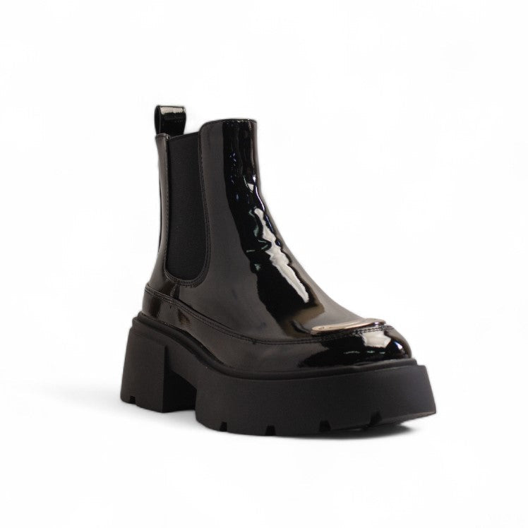 Europeon Union Women Black Vernis Leather Half Boot #3452