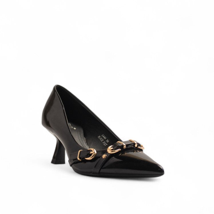 Europeon Union Women Black Vernis Leather Heels #3331
