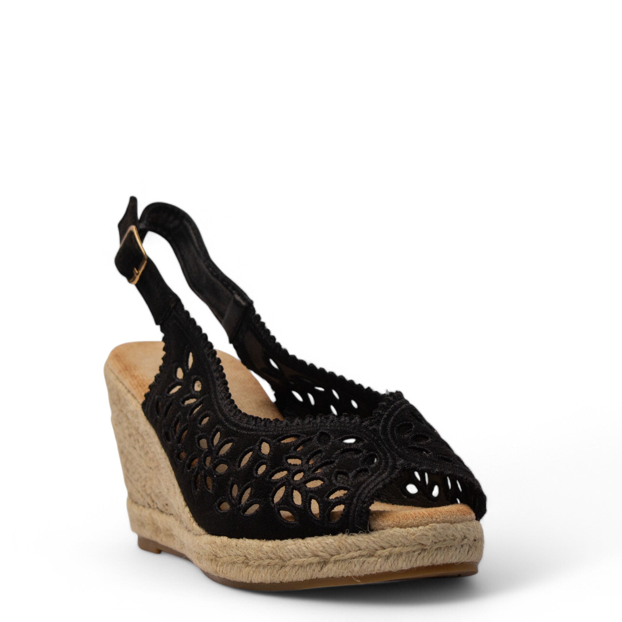 Increase quantity for Europeon Union Women Black Cloth Wedges #3897