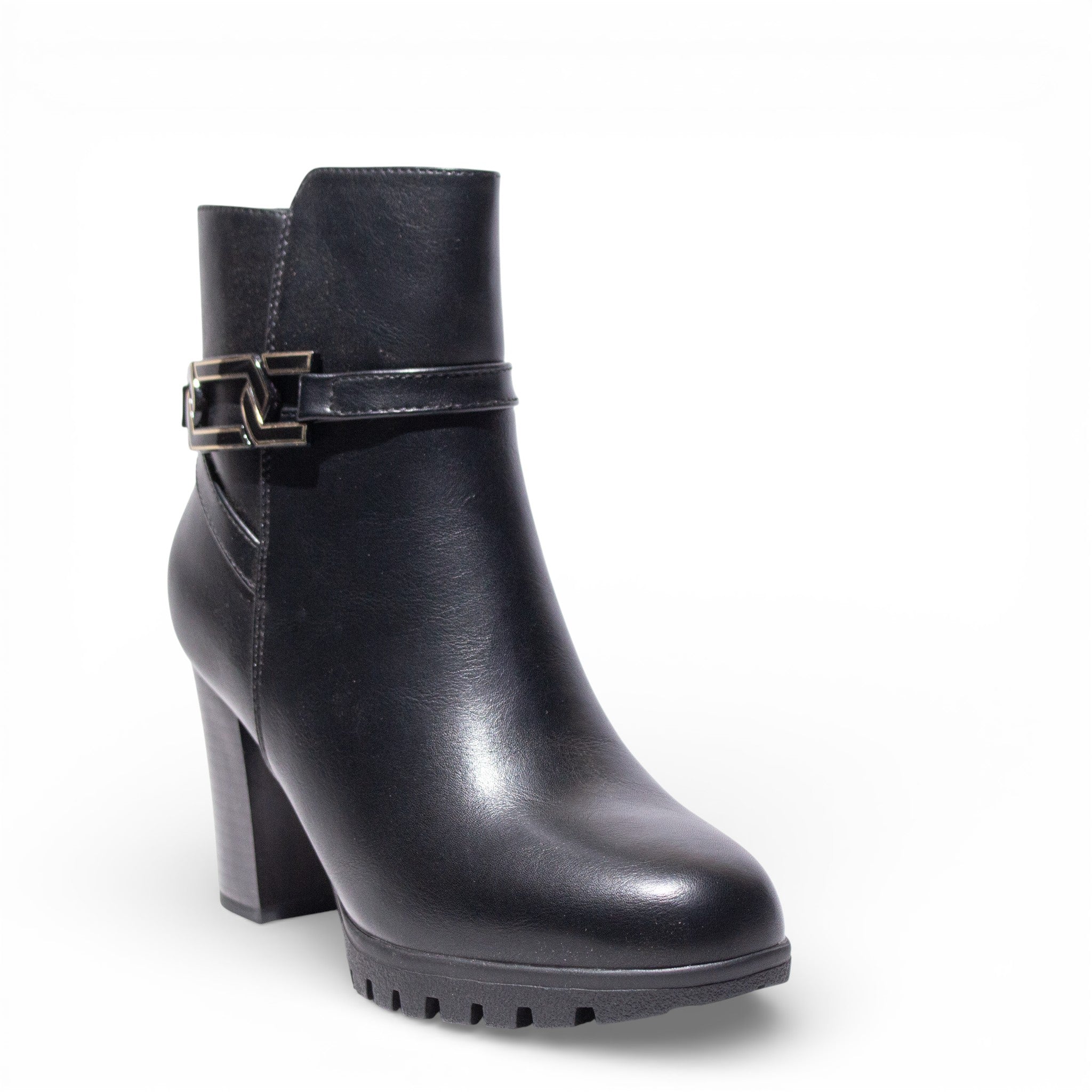 EuropeonUnion Women Black Leather HalfBoot #4835