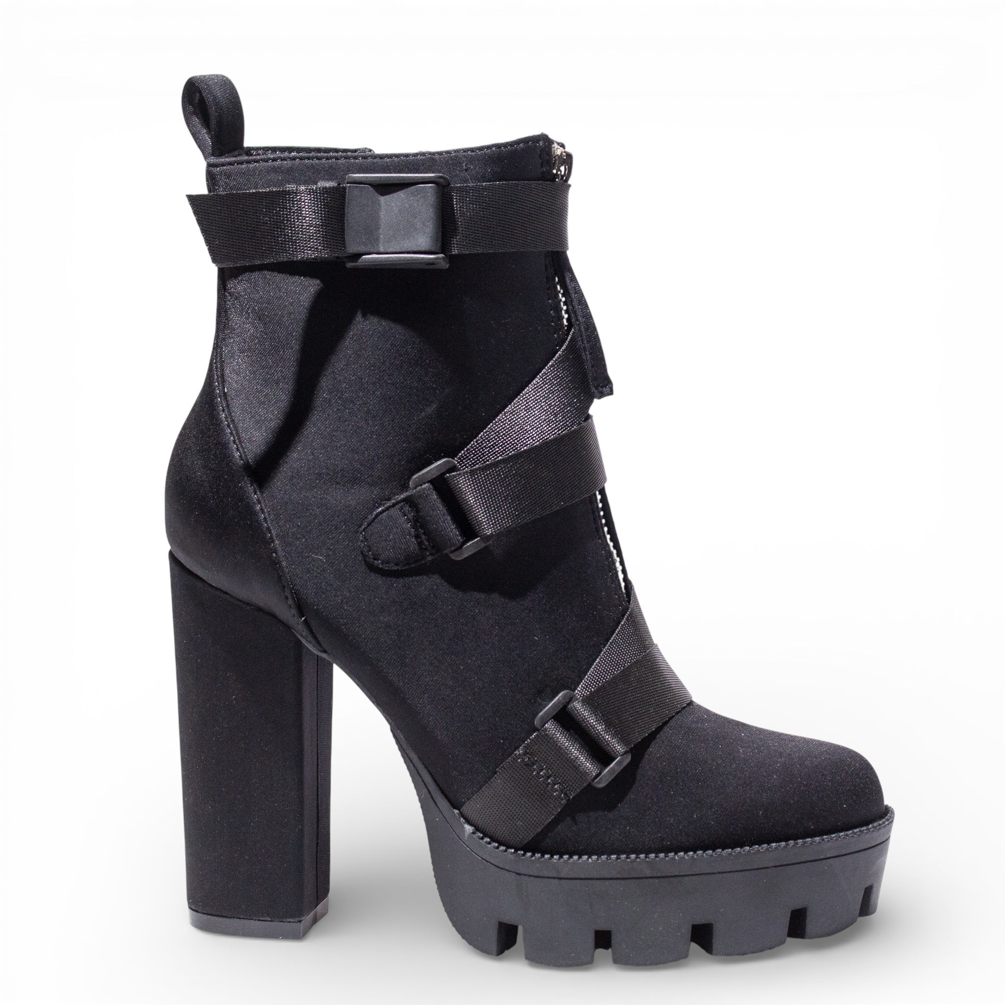 Increase quantity for EuropeonUnion Women Black Satin HalfBoot #4816