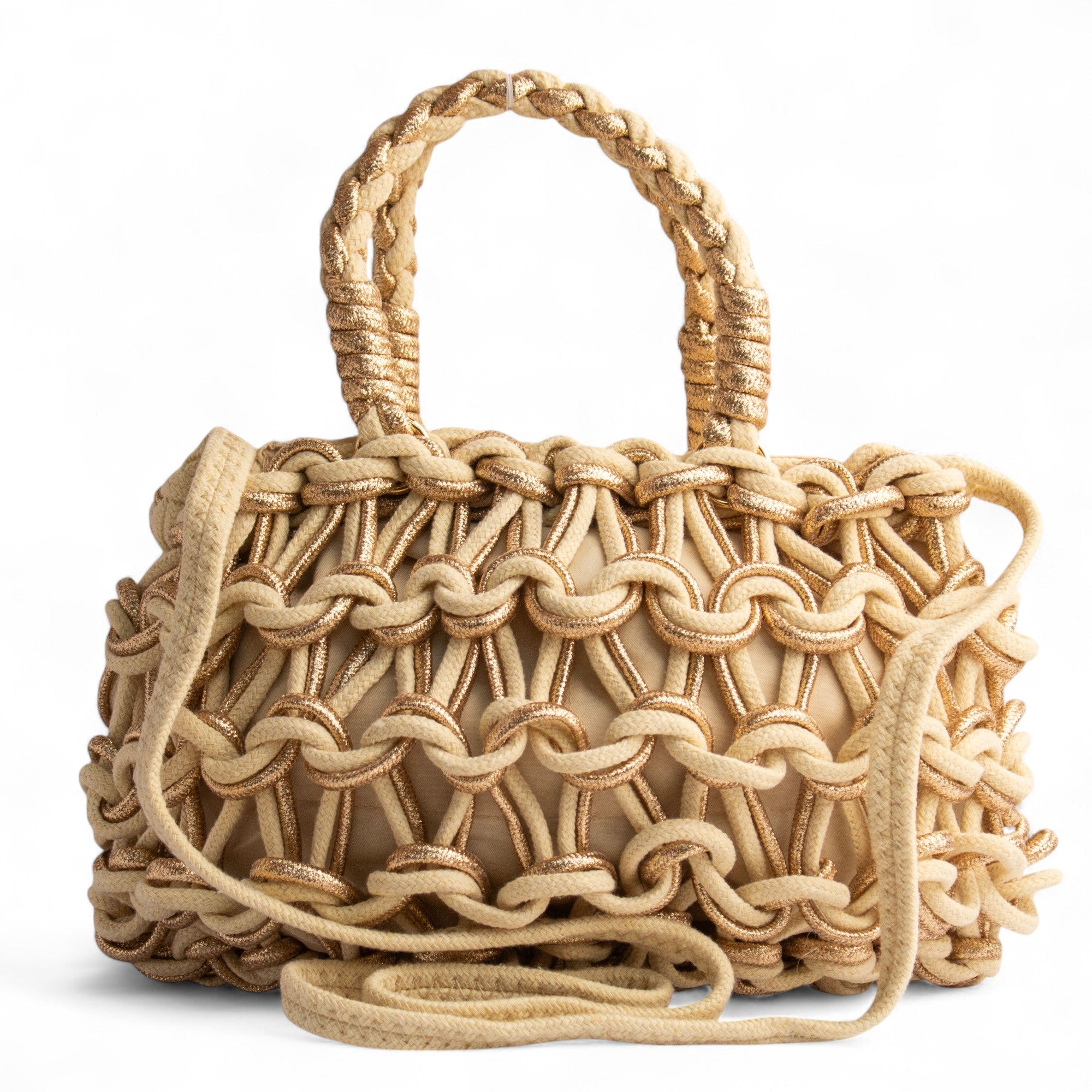 Increase quantity for EuropeonUnion Women Gold Wicker HandBag #2660