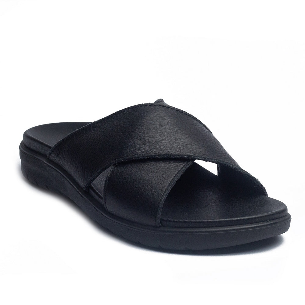 Italian Men Black Leather Slipper #4083