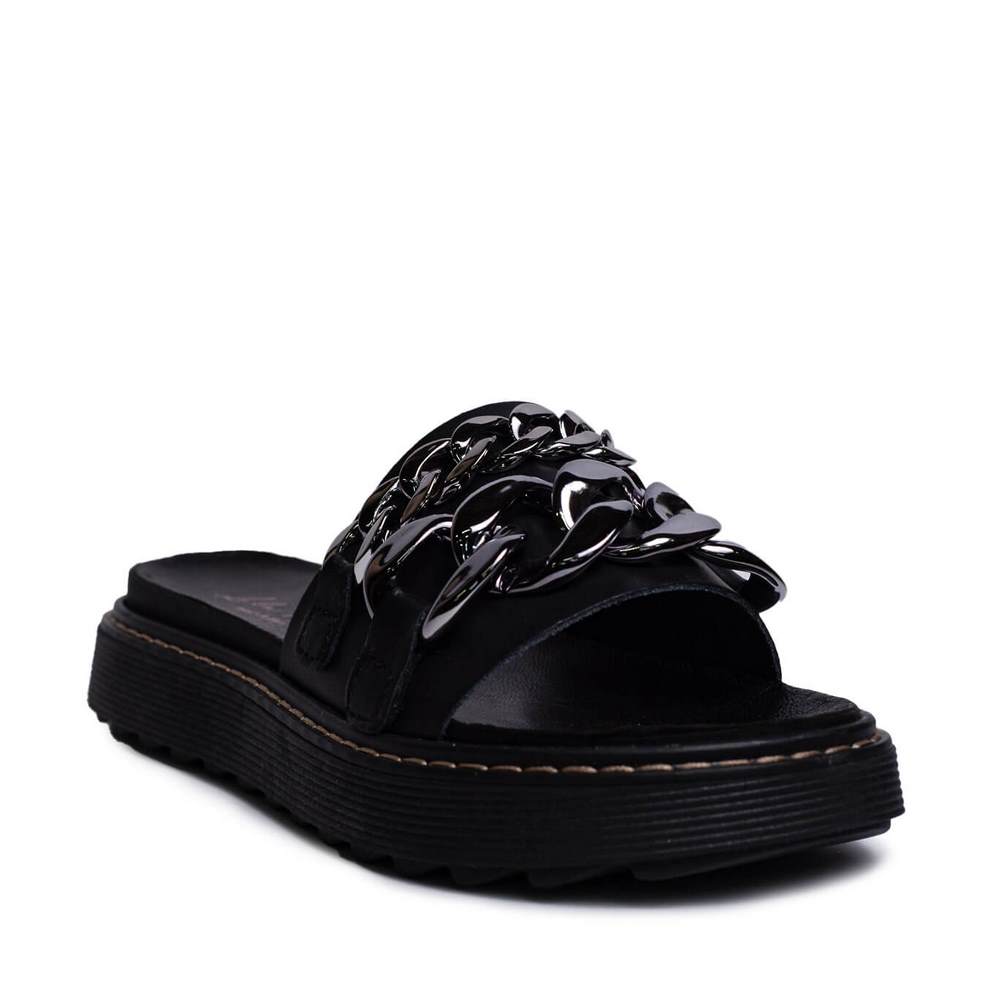 Decrease quantity for Italian Women Black Leather Slipper #0723