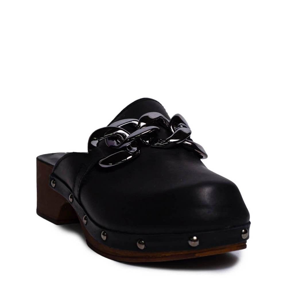 Italian Women Black Leather Wedges