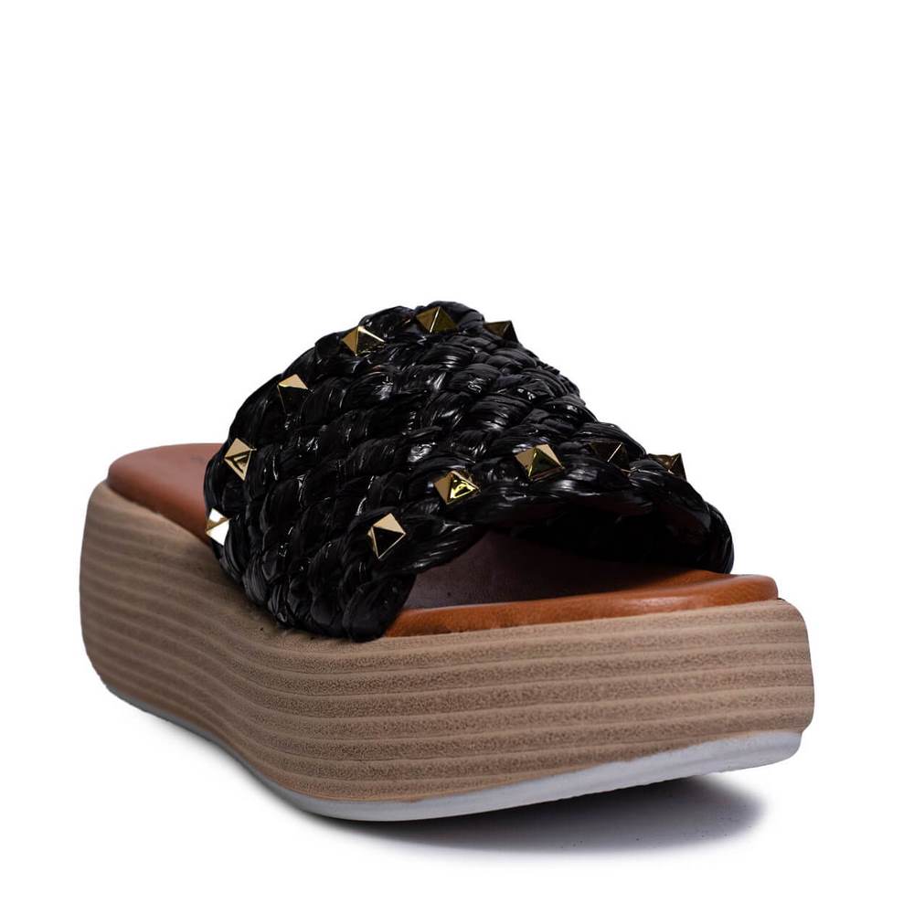 Decrease quantity for Italian Women Black LEATHER * WICKER Wedges #0680