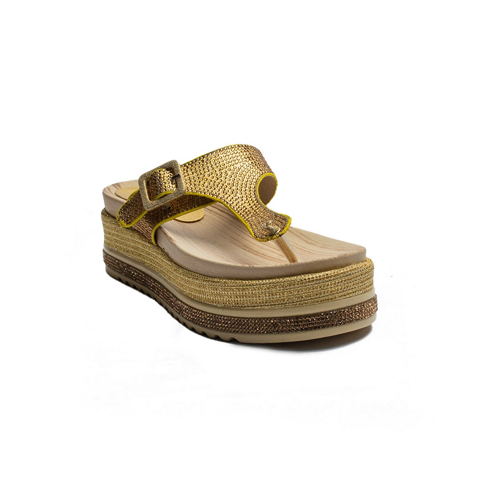 Turkish Women Gold Leather Slipper #1981