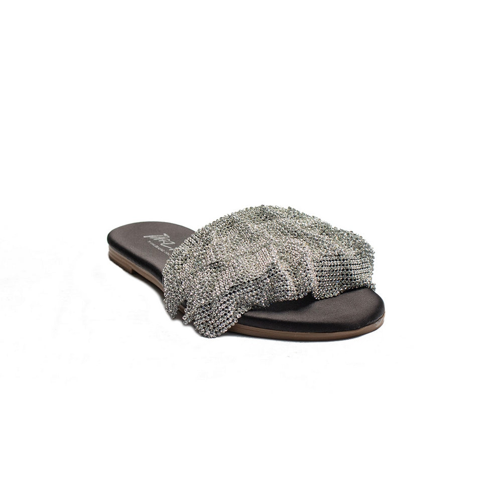 Increase quantity for Turkish Women Silver Satin Slipper #2040